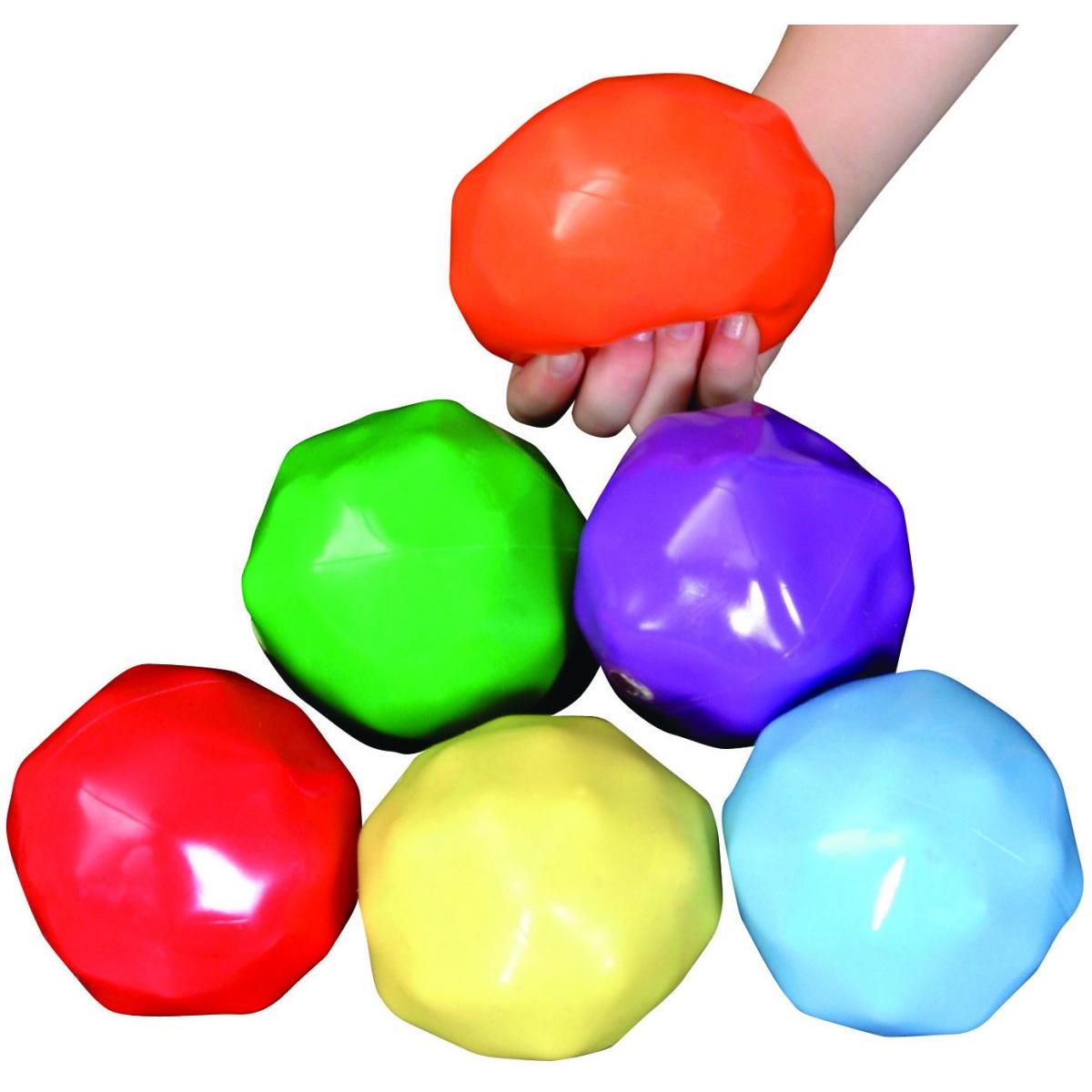 Šarene lopte od gumirane plastike ispunjene su malim PVC lopticama i neotrovnim gelom. Ova kombinacija stvara gibljivu masu koja pruža nevjerojatan taktilni doživljaj i potiče manipulativne sposobnosti.Težina: 300 gDimenzije: Ø9 cm