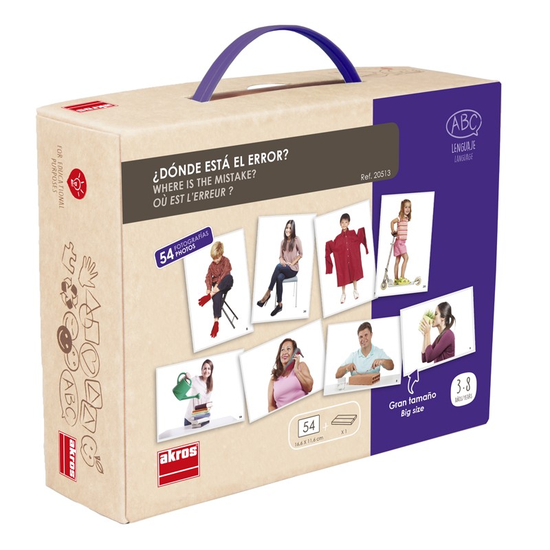 Uz ove fotografije djeca uče jezik prirodno i jednostavno jer su teme nelogičnosti, koje treba pronaći na svakoj fotografiji, odnosno ono što se ne uklapa u sliku: alat koji se krivo koristi, pogrešna veličina ili vrsta odjeće koju netko nosi i sl. Igra razvija moć zapažanja, koncentraciju, logičko razmišljanje te uči djecu kako se koriste pojedini predmeti. Kartice se mogu koristiti i za učenje drugog jezika te promiču bogaćenje vokabulara i usvajanje kompleksnih lingvističkih struktura na djeci prihvatljiv i jednostavan način.