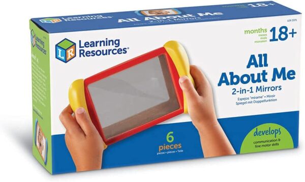 Set 6 obostranih, nelomljivih, akrilnih ogledala s okvirima različitih boja. Svako ogledalo je s jedne strane obično,a s druge strane konkavno-konveksno. Koristi se za podučavanje svijesti o tijelu, razgovor o emocijama i još mnogo toga. Ogledala su sjajan način da se djeci pomogne da vide i uvježbaju položaj i pokrete svojih usta i jezika kako bi proizveli zvukove i riječi.